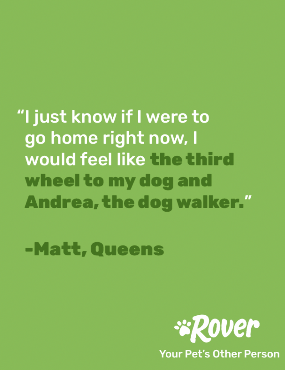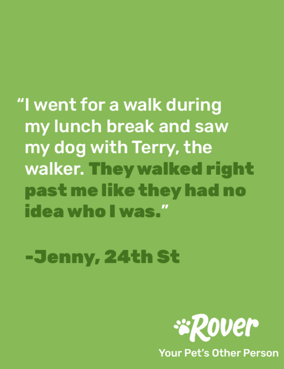 Pet owners can get very protective over their pets and don’t want to leave theirpets with a random stranger, much like how parents won’t leave their children with strangers. Rover’s sitters/walkers will be like your pet’s second parent.